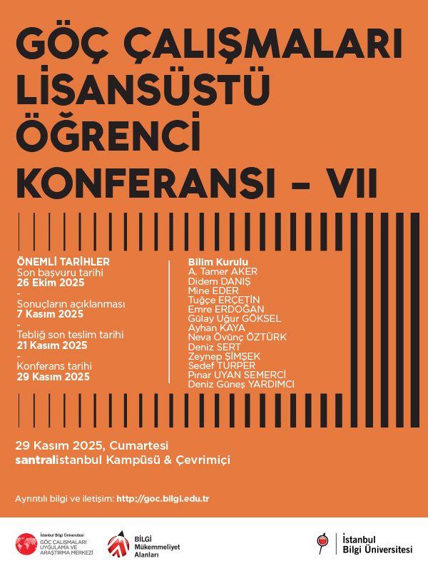 VII. Göç Çalışmaları Lisansüstü Öğrenci Konferansı bu yıl da göç alanında çalışan yüksek lisans ve doktora öğrencilerini hem birbirleriyle hem de bu alanda farklı disiplinlerde ve/veya disiplinlerarası çalışan deneyimli akademisyenlerle bir araya getirecektir.